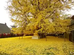 The majestic old ginkgo tree turns the entire area into a dazzling golden carpet in mid-November, creating a truly spectacular sight! Tourists come from all over China to see this magnificent view.