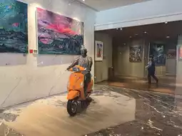 The hotel is situated in a secluded area, exceptionally quiet and surrounded by lush greenery. After lunch, I took a stroll, which led me to the riverside. The gentle river breeze was incredibly refreshing. I visited at a good time, as the water in the Chanba River was quite clean, shimmering under the sunlight. Speedboats occasionally glided across the surface, creating ripples that added a touch of dynamic beauty to the tranquil waters. The hotel's interior decor is also quite artistic. There's a Terracotta Warrior riding a motorcycle, which is quite unique. The hotel staff informed me that the artwork displayed in the lobby area is regularly updated, showcasing pieces by talented independent artists.