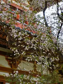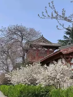 If you're traveling to Xi'an during cherry blossom season, don't miss the stunning blooms at Qinglong Temple. The temple boasts a variety of cherry blossom species and colors, making it a prime spot for viewing in early April. While the cherry blossoms are at their peak, the temple is crowded with visitors, many dressed in traditional Hanfu attire for photos, creating a lively and interesting atmosphere.