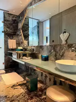 The room layout isn't super conventional, but the modern style is a plus—no outdated hotel vibes. However, the bathtub is connected to the living area, separated only by a symbolic screen. Taking a bath in the living room feels a bit odd. (Pic 4)