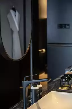 The Garden View Suite at InterContinental Xi'an breaks away from the rigid one-bedroom layout with its three-section spatial design and sliding doors. The open-concept bathroom area and bathtub evoke an urban resort vibe, successfully escaping the mold of a typical business hotel in the development zone. The black-and-white and apple-green color scheme, though unconventional, is pleasingly durable—offering a blend of sophistication and liveliness. The room tones are brighter in person than in photos.
