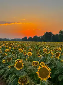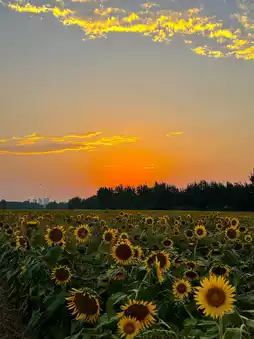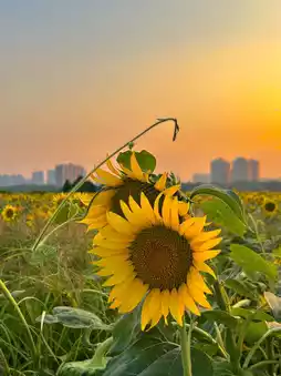 In the evening, the beautiful sunset and sunflowers complement each other. The sunset is around 6:30, but it gets dark quickly, and night falls around 7:00, so you must grasp the time.