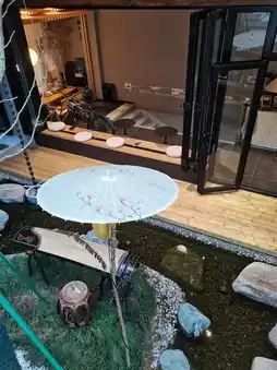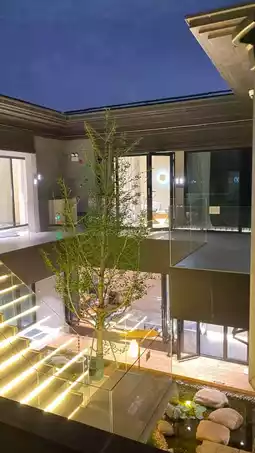 The homestay features minimalist, high-end wabi-sabi decor.