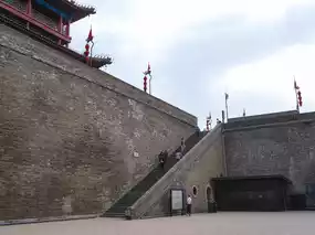Built in the Han Dynasty 206 BC, originally made of earth. Later, in the Ming Dynasty 1365-1644, the city wall was renovated and expanded using bricks instead. The wall is 14 kilometers long, 12 meters high, 15-18 meters thick, with 4 city gates and 84 towers.