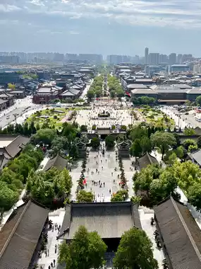 From the exit, I ordered a Didi (taxi) to the pagoda. I also bought a ticket to enter the pagoda. I climbed to the top of the pagoda and was able to get a great view of the courtyard.