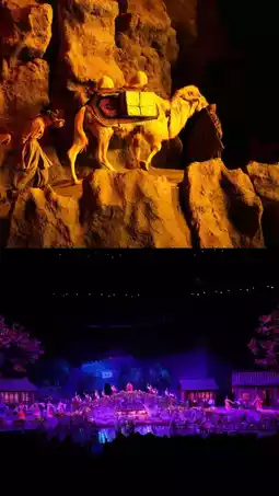 This show tells the story of camel caravans on the Silk Road, themed around the Belt and Road Initiative. It features six acts, with live wolves and camels 🐫 in the performance. The seating area rotates, but the experience is completely safe—no need to worry about any risks! ❗️❗️