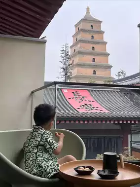 Step onto the hotel terrace, and the Giant Wild Goose Pagoda view unfolds before your eyes.