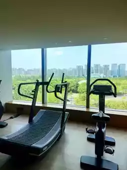 ✦ Garden-View Gym丨Equipped with Italian professional fitness gear and floor-to-ceiling windows offering scenic views