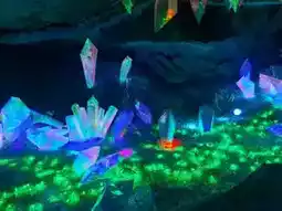 ✔️🌸 On the way down, there is also a Tian Cave, which charges a separate ticket, but some group tickets include it, making it very cost-effective. The entrance has some fake flowers that look nice for photos, and there is a small stream on the steps. If you wear sports shoes, you can pass quickly; otherwise, your shoes might get wet. Inside are some lights, quite ordinary.