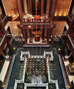 ✨ Walls adorned with golden glass bricks, creating a palace-like grandeur under the dome