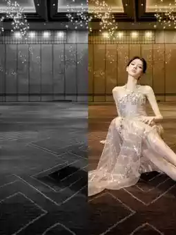 ✨ Crystal chandeliers resembling a galaxy of stars cascading down, crafting a romantic and dreamy visual feast
