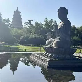 Next, head to the nearby Ruins Park, built on the foundations of the original Tang temple complex. Wide plazas, reconstructed walls, and cultural displays give you a sense of scale — showing just how grand the temple once was during Xi’an’s golden age. It’s a quieter contrast to the busy pagoda area, perfect for an afternoon stroll.