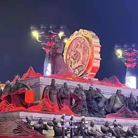 As night falls, walk into the lively Great Tang All Day Mall (大唐不夜城). This pedestrian street bursts with lights, music, and performances — from Tang-style dancers and musicians to glowing statues and street shows. The atmosphere is festive and modern, yet rooted in the grandeur of the Tang Dynasty.