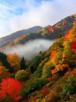 The autumn colors of the Qinling Mountains are vibrant, with countless changes in the colors of the leaves. The Qinling area boasts a rich variety of vegetation, including red maple leaves and yellow sumac. The maple leaves look like burning flames; the yellow leaves include ginkgo and poplar; the sumac leaves display a bright purplish-red color; and there are also green evergreen trees like pine and cypress. These various colors intertwine, as if nature has spilled its palette, creating a colorful painting.