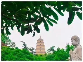 The temple offers a serene atmosphere 🌳, and next to it is a large, beautifully landscaped garden with picturesque spots perfect for taking photos with the Big Wild Goose Pagoda.