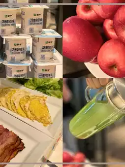 ✨A hearty breakfast buffet: the rich and creamy Mengniu yogurt🥛, the crisp and sweet fresh apples🍎, freshly made omelets🍳and bacon🥓, and refreshing freshly squeezed juice🧃, all to start your energetic day with a sumptuous feast.