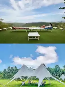 The guesthouse is nestled by the mountains and water, with a distant view of the Qinling Mountains. It covers about 8 acres with a total building area of 780 square meters, divided into three main areas: guest rooms, a café, and a children's play area. There are 14 rooms in total, including family suites, king rooms, standard rooms, and unique RV campsites. Some room types come with viewing terraces or tatami mats, offering mountain or lake views. The RV campsite provides bunk bed RVs suitable for families.