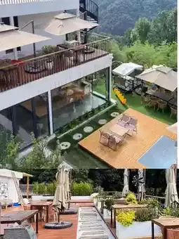 The guesthouse has a café offering light meals, drinks, and desserts. There are indoor and outdoor facilities such as slides, sand pits, and a swimming pool. It also features a barbecue area, hot pot area, mahjong room, and ping pong table. Guests can participate in seasonal activities organized by the guesthouse, such as summer fruit picking and winter forest experiences. Nearby attractions include Bailucang Scenic Area, Whale Valley Scenic Area, and Cherry Valley Picking Garden.