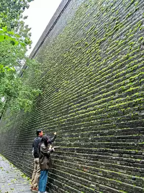 The continuous autumn rain seems to have pressed the slow-motion button on the Xi'an Ancient City Wall. The rainwater soaks the green bricks again and again, and from the cracks in the bricks that have been dormant for hundreds of years, a surprise quietly emerges—the green moss spreads along the texture of the wall like a soft velvet moss garment woven by time itself, gently wrapping the weight of the years.