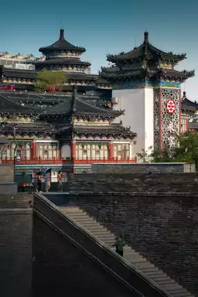 In the afternoon, let's cross over to the Ming Dynasty city wall. Climb the city tower at Yongning Gate (also known as the South Gate) (P2-4), the most magnificent tower on the Xi'an city wall. Standing on the broad wall, with its rustic blue bricks and neat battlements, one side shows the lively atmosphere of the old city streets, while the other reveals the modern urban skyline.