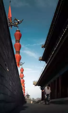 Sunset is the best magical moment. Wait on the city wall for the evening glow (P14) and watch the golden light dress the ancient city in splendor. When night falls and the lights come on, the night view of Yongning Gate (P17) is not to be missed. The brightly lit city tower and its reflection in the moat create a dreamlike scene.