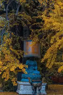 • Thousand-Year Ginkgo Tree: Inside the temple, there is a ginkgo tree said to have been personally planted by Emperor Taizong Li Shimin of the Tang Dynasty. Over 1400 years old, it has been listed in the national catalog of protected ancient and famous trees. Every year from late October to mid-to-late November, the leaves turn from green to yellow, and falling leaves resemble rain, creating a spectacular scene of "a single tree forming a forest, with springs and trees coexisting."