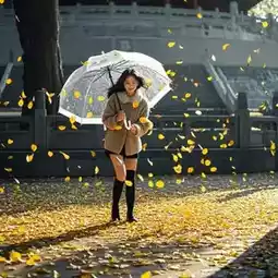 Around 11:00, when the sunlight slants, the wind blows and leaves fall like golden rain. Bring a transparent umbrella prop for ultra-beautiful videos!