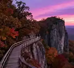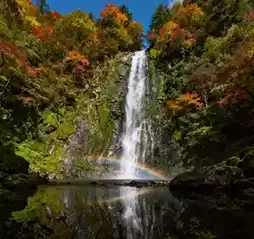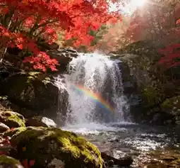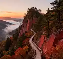 The Ice Crystal Peak at 3,015 meters elevation, where sea of clouds and colorful forests intertwine like a painting; by the Hanging Sky Waterfall, red leaves blaze like fire, beautifully contrasting with the water; the thousand-meter stone sea glows with a bronze sheen under the autumn sun, like a mysterious totem of nature.