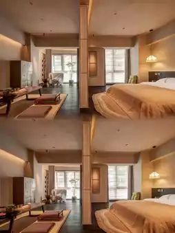 White walls paired with natural wood furniture, a Japanese residence vibe mixed with the rustic feel of Chang'an. Tea canisters and green plants sit in the corners, and the air carries a faint tea fragrance~ The communal tea area feels amazing; sit down and brew some southern Shaanxi green tea, instantly calming the travel jitters~ Every photo you take has a built-in filter, effortlessly capturing a serene atmosphere~