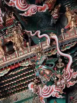 The hall is filled with clay sculptures of divine towers, Buddha niches, exotic flowers and trees, rare birds and animals, and Bodhisattvas
