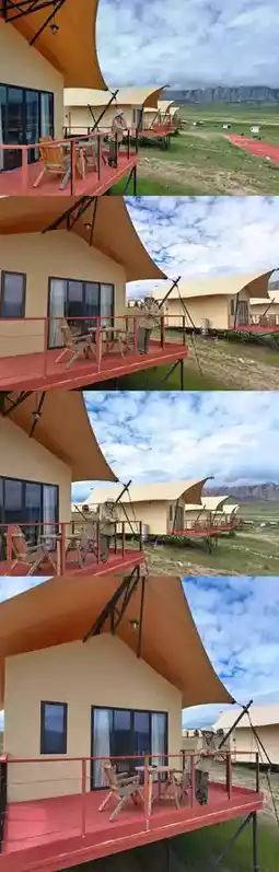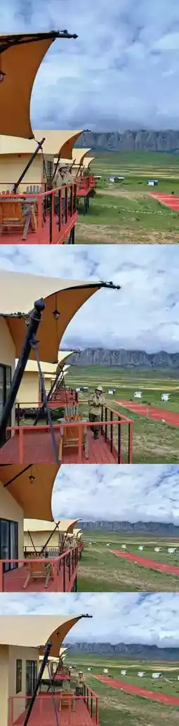 ☑️ Xiahe Ganjia Eco Camping Site 📸 Stepping into this eco camping site located in the heart of the Ganjia grassland feels like entering a world far from worries. Each tent is built with eco-friendly materials, not only sturdy and durable but also effectively insulated to ensure a comfortable and warm night even at 3000 meters altitude. Plus, every tent is equipped with star-rated hotel bedding, so you feel the warmth and comfort of home the moment you lie down. Our tent terraces offer a direct view of the “White Stone Cliff” — absolutely stunning! After visiting the attractions, return to the camp to keep snapping photos (fly fly fly) until you witness the breathtaking fiery sunset clouds!