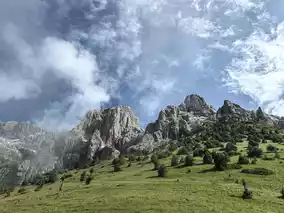 ♥ Scenery: Along the way, you'll see mountains and grasslands, with endless greenery that never gets boring even after days of travel. One grassland is dotted with small yellow flowers, while another is filled with clusters of purple blooms. The vegetation on one mountain differs from another, with varying shades of green. Driving through this landscape is incredibly refreshing.