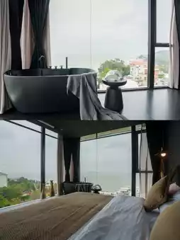 🏠 The view on the 7th floor is very good🏝️ You can see the entire coastline. There is a bathtub next to the floor-to-ceiling window🛁 Very considerate❤️, and it also comes with a disposable bath bag. You can enjoy the beautiful sunset in the room🌇