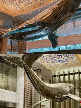 As soon as I entered the hotel, I felt like I was in a dreamy world full of ocean vibes. The surreal 'Whale Rising Starfall' art installation in the lobby, with its intertwining ocean and nebula, combined with the 'King Blue Whale' MR interactive experience, made me feel like I was diving into the deep sea and dancing with whales when I put on 3D glasses.