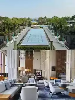 The hotel has an attractive exterior. When you enter the room and look out the window, you can see the endless sea. Sitting on the balcony, you can feel the sea breeze on your face. There are many hotels and shopping centers nearby, so dining is very convenient. Some rooms on the first floor and villas have their own swimming pools, so you can swim freely.