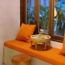 The store is small, but quiet, cozy, and simply but retro in decoration. The large wall paintings with rich colors and the many green plants in the store create a strong overall atmosphere.
