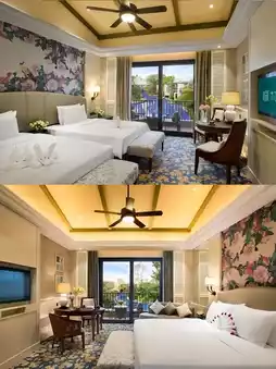 From the moment you step into the Water Villa area, you'll know this is more than just a simple stay. The design cleverly blends Southeast Asian and Minnan elements, making you feel like you've entered a world away from the hustle and bustle. Especially those townhouses built around the garden pool, with the first floor leading directly to the water and the second floor overlooking the entire lake island. It's the perfect place for summer getaways and photo ops!