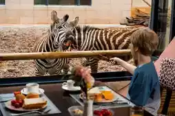 Highly recommend staying a night at the Giraffe Manor! The themed rooms are very unique, with balconies offering the best views. Giraffes and zebras often come to visit, and you can feed them right from your room. You can even have breakfast with the giraffes, a unique experience that's hard to find elsewhere. Wake up in the morning, open the curtains, greet the giraffes, and start a wonderful day. After a tiring day, enjoy an afternoon tea feeding interaction at the manor, feeling like you've been transported to Kenya, with a strong vacation vibe.