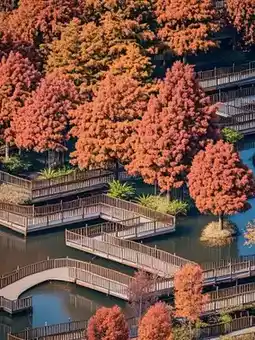 The Bald Cypress trees in Xiamen Wetland Park have turned red? ? ?