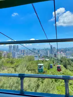[HeartBeat][1:00] The cable car journey takes 40 minutes. Half of the journey is through the forest park and the bustling city, and the other half is through the coastal scenery and the tranquility of the mountains.