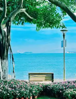 The internet-famous "Lonely Tree" is here. After navigating to "📍Wanyuepo," keep walking, pass the bookstore, and go down the small path to see the famous tree; the seaside bus stop is a little to the left of the tree.