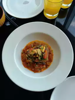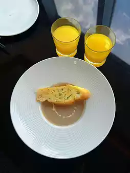 🍲 Unlock culinary surprises at the riverside restaurant! The truffle wild mushroom soup fills the air with mountain forest aromas the moment it's served, while the pan-seared sea bass is absolutely divine🐟—golden crispy skin paired with Mediterranean-style sweet-and-sour seasonal veggies, transporting you straight to a sunny beach paradise with one bite.