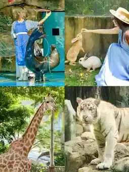 Giant pandas 🐼, white tigers 🐅, giraffes 🦒, zebras 🦓,
