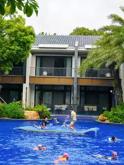 🌴 Xiamen Haiyue Resort's Water Garden Villas present the all-new upgraded family activity: "Water Magic Carpet Battle"! Daily at 16:00, delivering endless screams of joy for kids all summer long!
