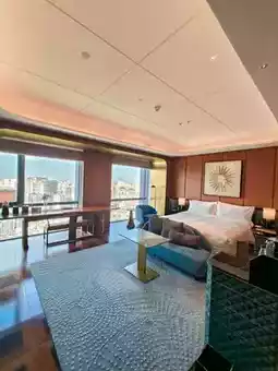 The guest rooms are a private haven of modern luxury, blending contemporary Chinese aesthetics.