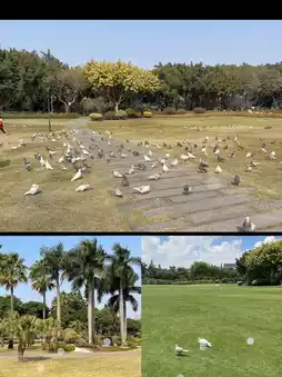 Stroll along the lake 🚶, feed the pigeons 🕊️. Sunlight sprinkles on the shimmering lake surface, and the Egret Goddess statue in the center of the water is gracefully beautiful~ The air is filled with a leisurely scent, a walk around is super healing!