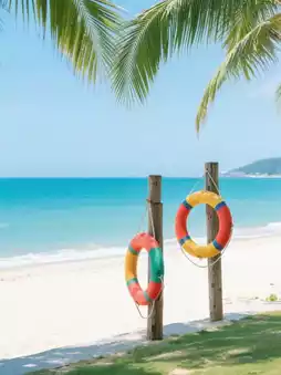 Rent a mint green bike and ride along the tidal flats, the sea breeze blowing your hair into a messy bird's nest, but you can't help laughing even louder🌬️ On the beach at Coconut Wind Village, kids hold small shovels digging sand pits, waves "splash" in, startling them to jump and dodge, their laughter louder than the waves. Riding to the Music Square, an uncle plays guitar, chords mixed with the sound of waves, passersby can't help humming along🎸