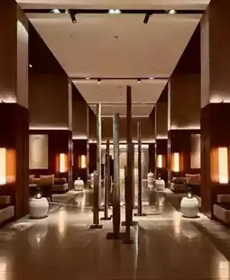 Entering the lobby, wood and stone seem to be "breathing"