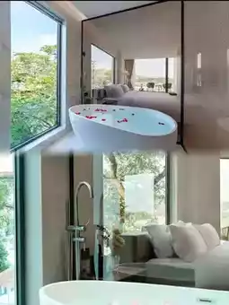 The bathtub in the room is super large and comfortable; open the electric curtains and watch the sunrise from bed, absolutely amazing