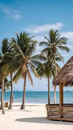 Check in at Coconut Wind Village / “One Country, Two Systems” slogan sign